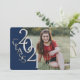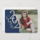 Classe de 2021 invitation de graduation bleu et argent avec photo et éditable fête de graduation ou information de début sur le dos. Customisez avec votre propre photo, texte et style de police.