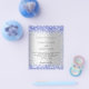 A faux silver looking background. Decorated with blue confetti. Personalize and add your names and party details.