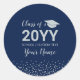 This modern graduation party sticker features silver typography "Class of 20YY (Your graduation year)" and a graduation cap graphic with a confetti background. You can customize the text in black. More color options and party supplies are available at my shop BaraBomDesign.