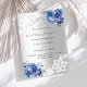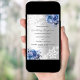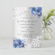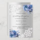 For an elegant and romantic wedding. A faux silver looking background decorated with blue florals, roses and white lace. Personalize and add your names and details.