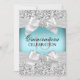 Silver & Blue Quinceañera Party Invitation. Pretty Silver glitter & diamond jewel bow. Please note: All flat images!