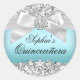 Silver & Blue Quinceañera Sticker. Pretty Silver glitter & diamond jewel bow. Please note: All flat images!