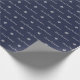 A silver and blue merry christmas pattern with snowflakes on wrapping paper.
