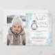 Photo Silver Blue Penguin Winter Onederland Birthday Invitation