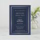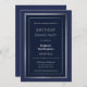 An elegant navy blue 18th birthday dinner party invitation featuring a twin silver lined border.