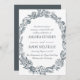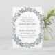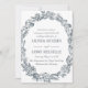 Elegant watercolor botanical wedding invitation frames your wedding details with a wreath of sheer pastel watercolor foliage in pale, silver and grey on a elegant white background.
