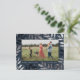 An elegant one photo Merry Christmas card featuring hand drawn pine branches in a festive silver and navy blue colour palette designed by Stacey Meacham. The backside is designed as a postcard so there is no need for additional envelopes. Holiday postcards are an economical way to send beautiful holiday cards to friends and family. Accents from the front of the card are carried onto the back to give the card a high end cohesive look.