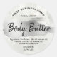 Body butter, or spa and skincare labels, with a silver accent brush on a marble background.