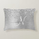 Silver Brushed Metal Glitter Monogram Name Accent Pillow