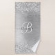 Silver Brushed Metal Glitter Monogram Name Bath Towel Set