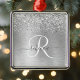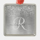 Silver Brushed Metal Glitter Monogram Name Ornament