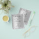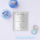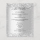 A modern, elegant wedding program, timeline. Faux silver looking background decorated with faux silver confetti. Personalize and add your names and wedding details. Black coloured letters.