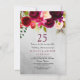 Silver & Burgundy Floral 25th Wedding Anniversary Invitation