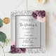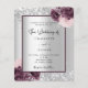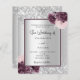 Faux silver looking background decorated with burgundy and pink florals, flowers and faux silver confetti. Personalize and add your names and wedding details. Black letters.