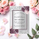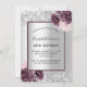 Faux silver looking background decorated with burgundy and pink florals, flowers and faux silver confetti. Personalize and add your name and party details. Black letters.