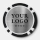 Poker chips for employees or clients to celebrate the 25th anniversary of your business. Commemorative design personalized with your company logo and the year on the front, with a faux silver metal background, a laurel branch, and stars. On the back, it has space to add a bigger logo or an image, and it can be changed to text by clicking the button to edit the design.