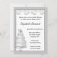 Invitation with silver cake topped with bride and groom, silver frame and white bells top border.  Shown as a bridal shower invitation, but also perfect for anniversary or engagement party.