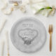 Lovely silver grey Calla Lily paper plates with floral damask background for a 25th wedding anniversary. Elegant silver banner is accented with two Calla Lilies and has text art saying 25th Anniversary in ornate script. Upper text is ready for you to customize with the names and anniversary dates.