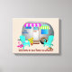 Camper welcome wrapped canvas with two places to add your own text. A tropical camping image includes bright colours, flamingos and a seashell just outside the door of a cute little camping trailer. The family name can be added to the outside of the trailer, with more text along the bottom to welcome guests to "our house on wheels". The bottom text must be one line only, and don't let the wording get near the edge. Change this to any size (not extra large), but the image placement may change. Go into the customize area if you'd like to move the name template or change the background colour yourself.