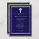 Celebrate the sacred sacrament of Confirmation with this elegant invitation featuring a silver Celtic cross on a deep navy-blue background, framed by a shimmering double silver border. This meaningful design reflects the Holy Spirit’s presence, reminiscent of the Apostles’ experience at Pentecost. Customize this timeless invitation to honour your special occasion.