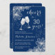 Silver Cheers Wine Floral Navy Milestone Birthday Invitation