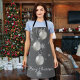 Celebrate the season in style with this Silver Christmas Ornaments Apron. Adorned with sparkling Christmas ornaments, festive ribbons and bows, and delicate white snowflakes, the design also features cheerful hanging baubles and a classic Merry Christmas greeting in elegant script. Perfect for adding charm to any winter theme gathering, this holiday design makes cooking, baking, or hosting extra merry. A thoughtful choice for Christmas kitchen gifts or as a cheerful seasonal accent in your own home.