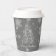 Sip your favourite Christmas time beverages with a festive set of Silver Christmas Tree and Snowflakes Paper Cups. Paper cup design features a vibrant artistic Christmas tree with falling snowflakes and a dark grey background. Additional gift and holiday items available with this design as well.