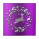 Silver Christmas Wreath, Reindeer Purple Christmas Tile