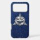 Dive into the predator aesthetic. This iPhone 17 Pro Max case features an aggressive, metallic silver geometric shark with a 3D chrome finish. The modern industrial art is perfectly set against a premium cobalt blue python snakeskin texture, designed for those who value strength, speed, and futuristic design.