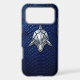 Dive into luxury with this powerful iPhone 17 Pro Max case. Featuring a sleek, metallic silver geometric shark in a sharp 3D chrome style. The modern industrial art is set against a premium cobalt blue python snakeskin background, offering a sophisticated and high-end aesthetic. Perfect for those who value strength, speed, and futuristic minimalist design.