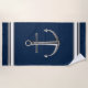 This towel design has a silver coloured anchor with coordinating accent stripes at the top and bottom. Shown here with a navy background, that you can customize.