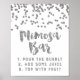 Mimosa bar sign poster for wedding in white and silver confetti pattern with handwritten style lettering. Perfect for weddings or bridal showers.