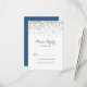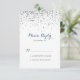 These silver confetti minimalist RSVP cards are perfect for a rustic wedding. The simple and elegant design features silver confetti and classic fancy script typography in blue and black.