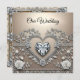 Silver & Cream Elegance: Diamond Heart Wedding Inv