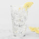 Elegant glass tumbler, with graphics of a silver tone flourish and crown text area with custom text. Personalize the text to this lovely addition to your dining table.