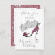 Deep cherry plum Purple floral shoe with a beautiful silver tiara or crown. Personalized special occasion invitation for Birthday, Quinceanera, Graduation, Shower or your special Event.