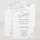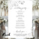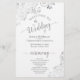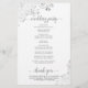 These wedding programs are elegant and tasteful, while still being budget friendly. The design features ornate silver grey faux foil curls and swirls with grey text on a white background. The typography features lacy script calligraphy, and there is room for details on the ceremony, the bridal party, and a short thank you.