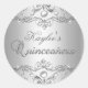 Silver Quinceanera Sticker. Elegant damask pearl design & diamond bows. Please note: All flat images!