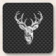 Silver Deer on Black Carbon Fibre Style Print Coaster