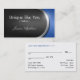 Appointment cards with unique dark grey & blue and silver design accents. Personalized with the Business' name & information, and the specialist's name. Perfect for any trendy, appointment setting business.