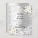 For an elegant and romantic 60th wedding anniversary. A faux silver looking background decorated with white florals, roses, faux diamonds and white lace. Personalize and add your names and details.