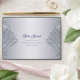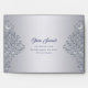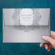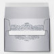 This envelope design shines with timeless sophistication, featuring a soft silver-grey background beautifully adorned with an ornate silver damask frame. The intricate swirls and floral motifs sparkle with a subtle glitter-like effect, giving the design a refined yet glamourous character. The central text area stands out elegantly, making the envelope ideal for adding a luxurious touch to any occasion.