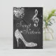 Silver Disco Ball and Sparkle Heels Black Sweet 16 Invitation