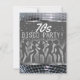 Retro 70s style disco ball silver invitations read 70s Disco Party! in white, marquee look letters on the front. Silver grey disco dancer silhouettes design with an actual photo of a shiny silver mirror disco ball as a top and bottom border. Perfect retro birthday invitation for baby boomers and hipsters or hippies. Back is matching silver disco ball background with 70s party information framed in faux black chalkboard with silver glitter look border. Note: All images are printed. Not actual metal, glitter, or chalkboard. Ready to be personalized with your 70s dance party invitation details with text template, including RSVP information. Several other vintage 70s and retro disco invitations are available in our Zazzle.com/angela65 store.