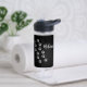 Silver Dog Paws black Background Print Pattern Water Bottle
