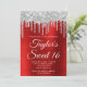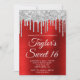 Silver Dripping Glitter Red Foil Sweet 16 Invitation