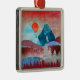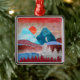 A beautiful abstract landscape design with mountain and forest scene and an eagle landing on a tree in vibrant shades of blue, cyan, silver, and crimson.