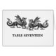 Perfect for a sophisticated fantasy tabletop game themed wedding is this nerdy and unique Elegant Dragons Wedding Table Number Card featuring a vibrantly coloured pair of silver dragons. Easy to customize, simply add the appropriate table number(s) in the text field provided. Click "Customize It" to find additional personalization options.