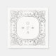 Elegant vintage ornate frame design in faux silver colour with couples monogram, romantic and sophisticated, great wedding paper napkins for vintage wedding, romantic formal wedding, and luxury winter wedding.