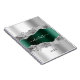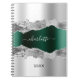 Faux silver and emerald green metal and agate, marble stone print as background Personalize and add your name. The name is written with a modern hand lettered style script.